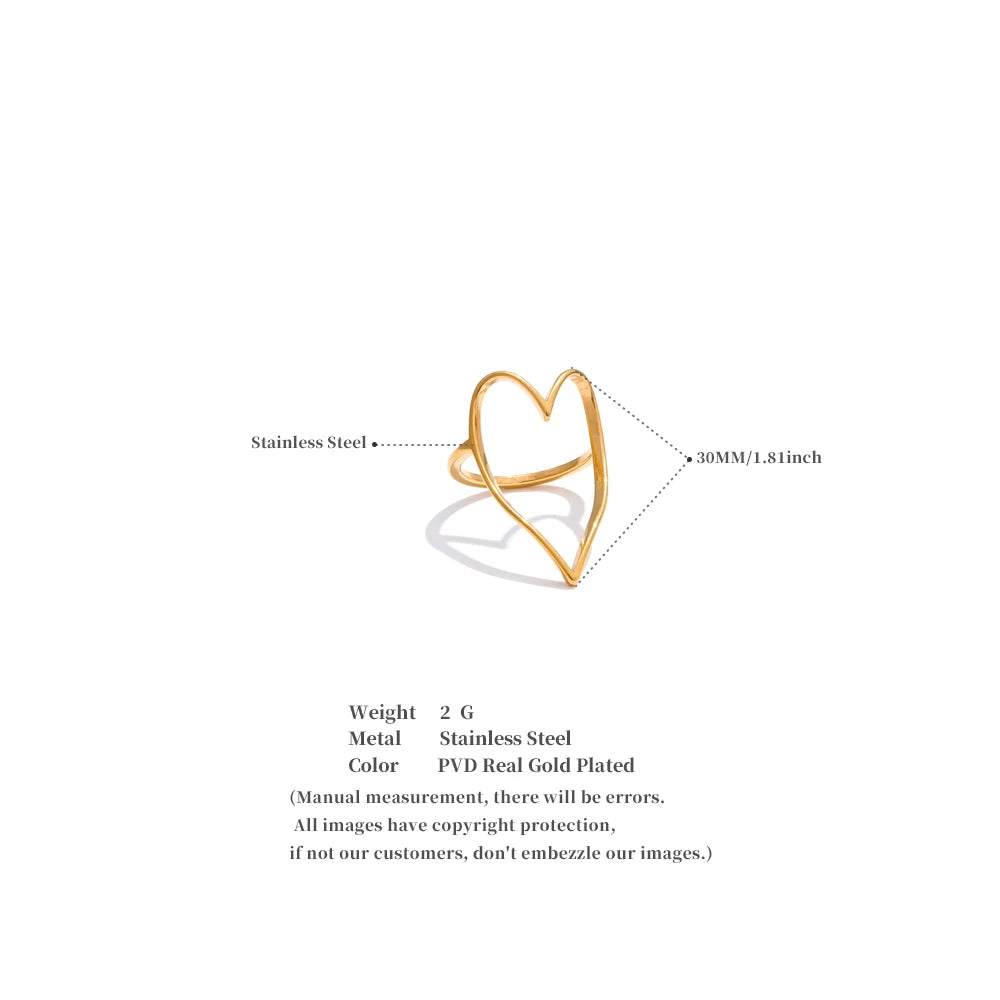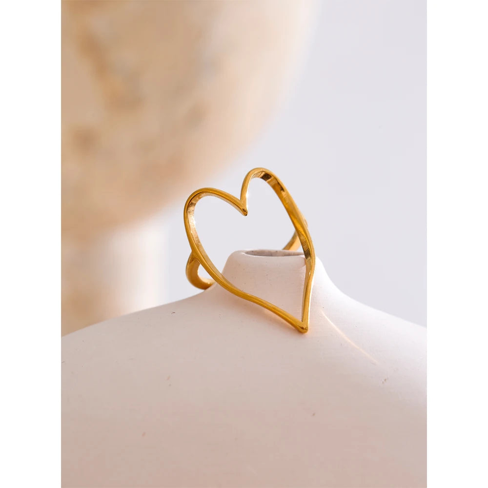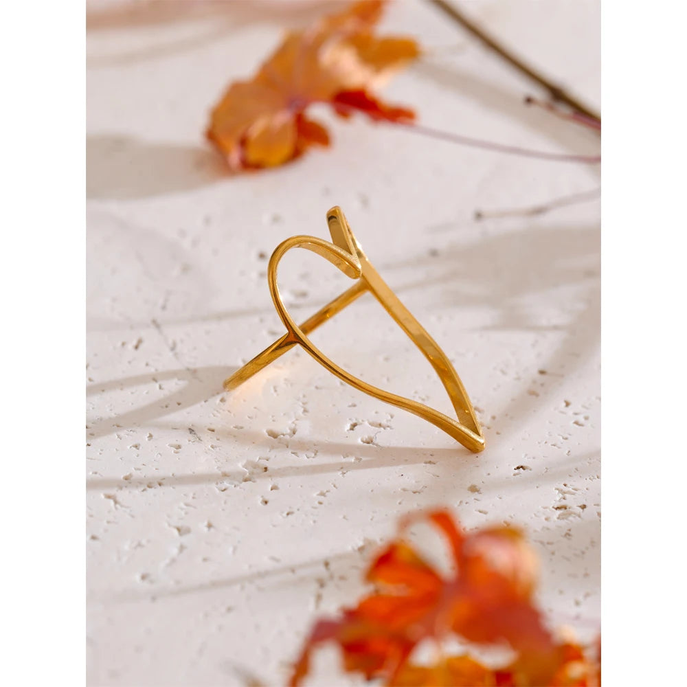 This delicate open ring features a sleek heart outline design crafted in a smooth gold finish, creating a timeless piece that adds a subtle touch of love to any look.