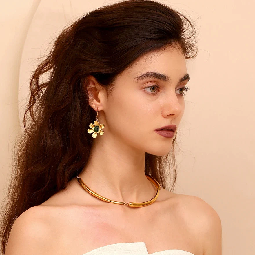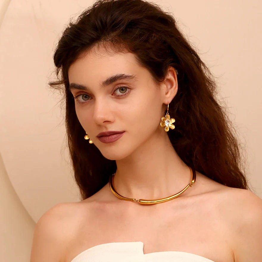 Featuring a delicate golden flower design, this piece is centered with a sparkling crystal that adds a refined touch of elegance. The sculpted petals create a soft, feminine silhouette that feels timeless and graceful.